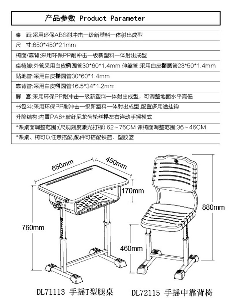 DL71113手搖T型腿桌